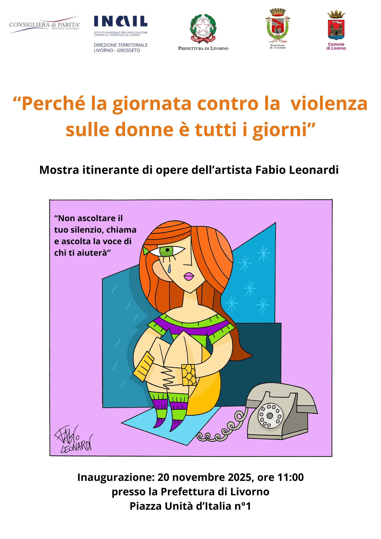 Mostra itinerante “Perché la giornata contro la violenza alle donne è tutti i giorni”. A cura della Prefettura, INAIL, Provincia, Consigliera di parità e comune di Livorno.