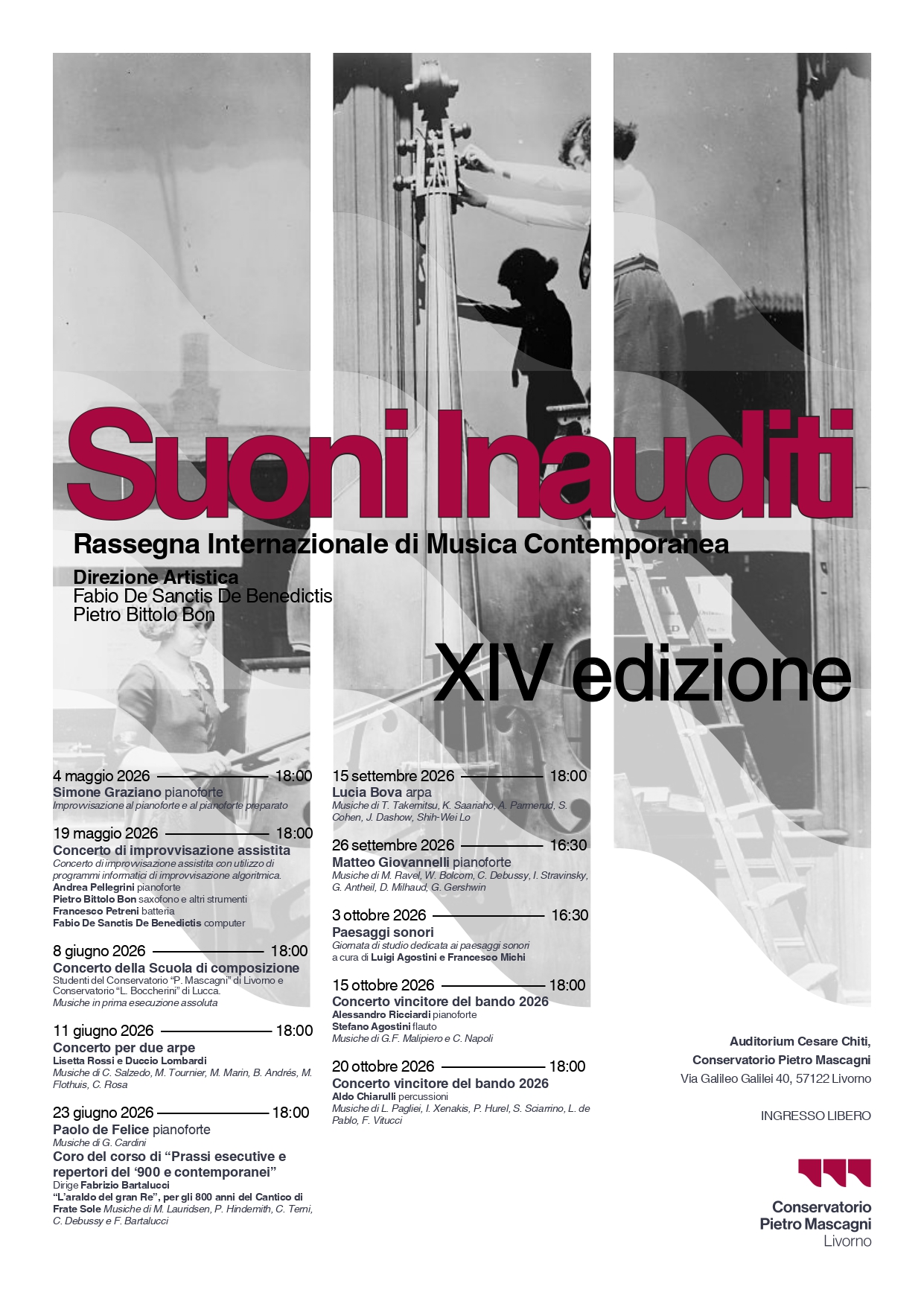 “Suoni Inauditi” rappresenta da anni uno degli spazi più significativi per l’esplorazione dei linguaggi della musica contemporanea, con una programmazione che mette in dialogo compositori, interpreti e pubblico, tra prime esecuzioni, sperimentazione e ricerca sonora.